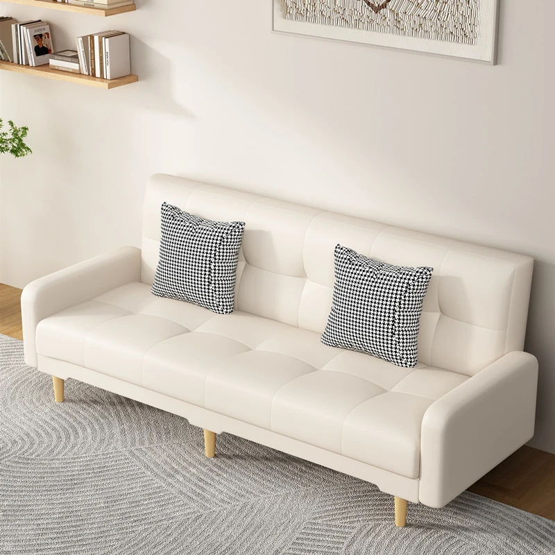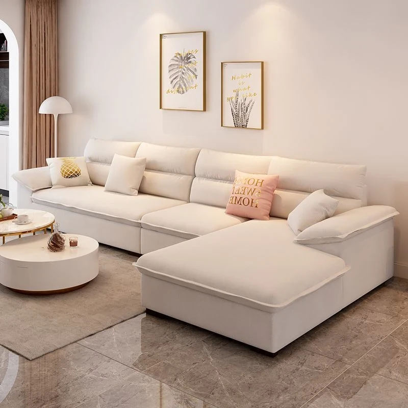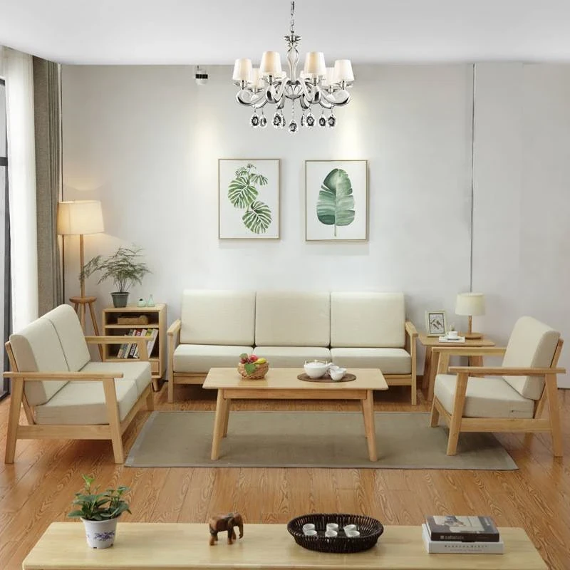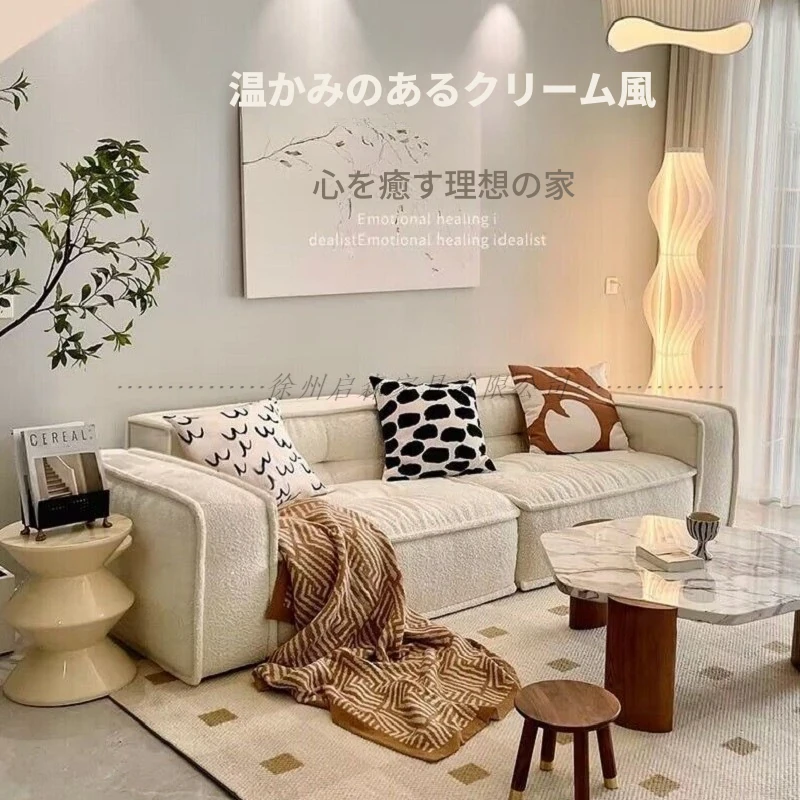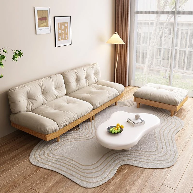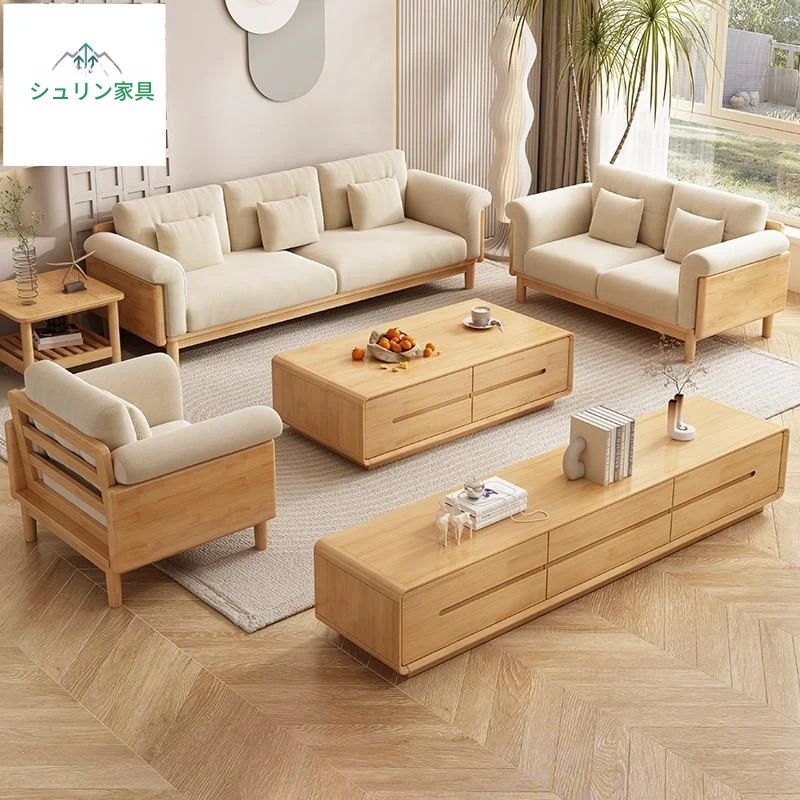 北欧スタイルの無垢材ソファ|現代的でシンプルな小型リビング向け家具セット|家庭用クリーミーな風合いの日式ファブリックソファで、心地よい空間を演出します!
