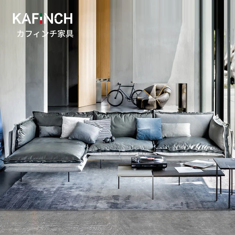 北欧インダストリアル風のミニマリストレザー&ファブリックダウンソファ|イタリアンラグジュアリー、サイズに応じたシンプルでモダンなリビングルームコンビネーション!おしゃれで機能的な空間を演出します。