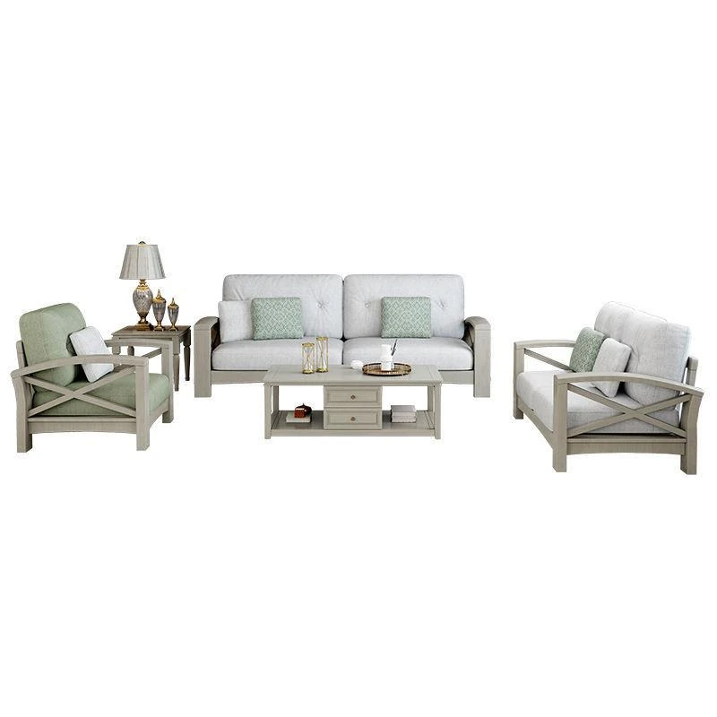 新中式全実木製ソファー - モダンでシンプルなデザイン、経済的な木製ソファー。小型住宅にも最適な原木家具のコンビネーションで、洗練された空間を演出します!