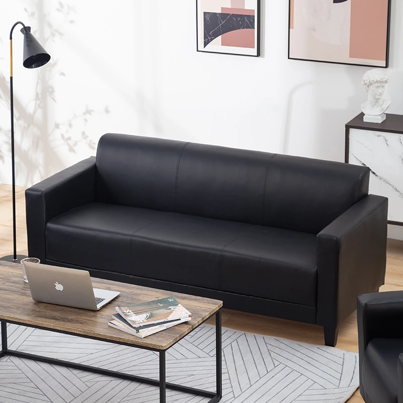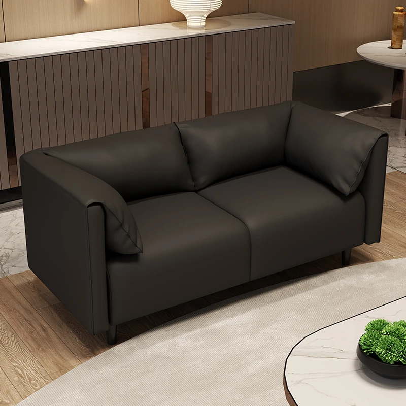 モダンでシンプルなオフィス用ソファ|小型アパートやリビングに最適なブラックレザー|ビジネス向け2人掛け・3人掛け|快適な休息スペースを演出します!