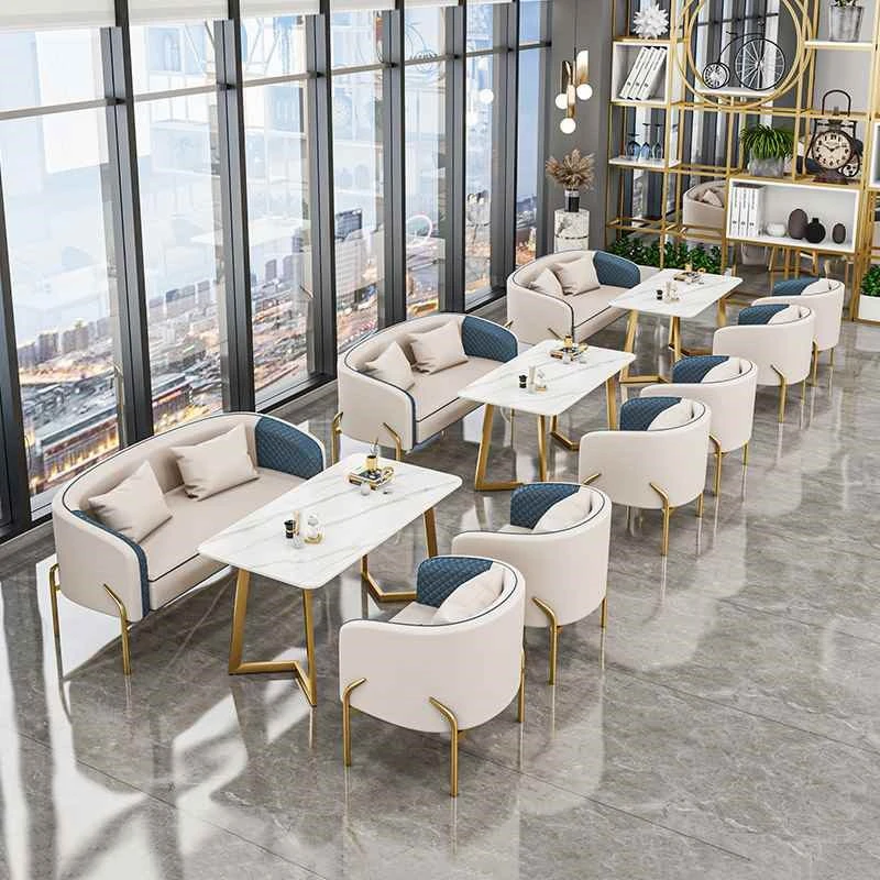 北欧デザインの談話ソファチェア - おしゃれなカフェやショールームに最適!軽やかなラグジュアリー感を演出し、撮影スタジオや接客スペースにもぴったりのデザイナーズ家具セット。