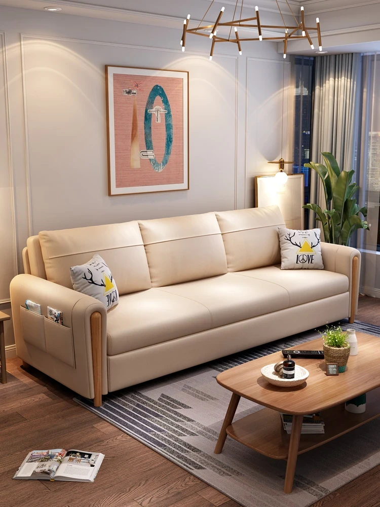 現代的ミニマリストデザイン!木製フレームのリビング用ソファ、コンパクトな小型ハウスに最適。収納機能付きの3WAYスタイル、クリーミーカラーのファブリックで心地よい空間を演出します。